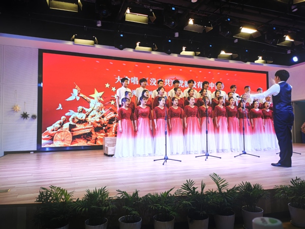 2021年6月18日晚18:30,国际商学院党支部应青山绿庭社区党支部邀请,前往文体中心参与“合美筑青山 永远跟党走”庆祝中国共产党成立100周年暨社区品牌服务发布会,参与此次发布会的有党建共建单位20余家。国际商学院党总支副书记张红、教工党支部书记牛伟、学生党支部王瑞带队,选派一支由36名学生组成的合唱团和4名学生组成礼仪队参与此次活动。