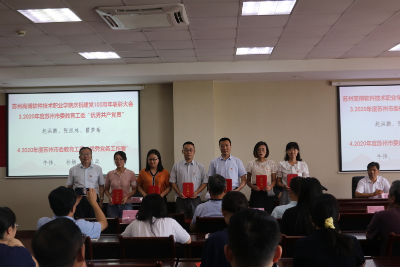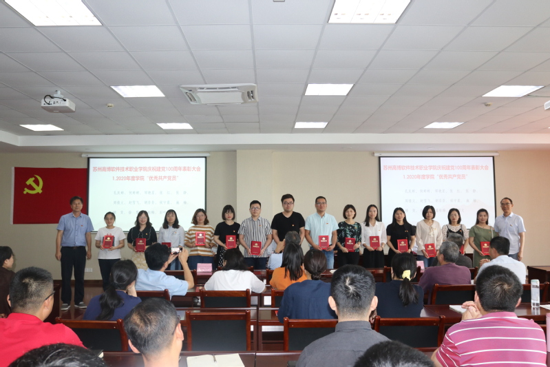 首先,举行了隆重的表彰仪式。党委书记、校长朱秀林同志宣读了《关于表彰2020年度优秀共产党员、优秀党务工作者、先进基层党支部的决定》,表彰了14位名高博“优秀共产党员”、6位高博“优秀党务工作者”、3个高博“先进基层党组织”、3位苏州市委教育工委“优秀共产党员”、3位苏州市委教育工委“优秀党务工作者”、1个苏州市委教育工委“先进基层党组织”、1位省委教育工委“优秀党务工作者”。校党委班子成员分别为获得表彰的个人、集体进行了颁奖并合影。通过表彰,号召学校各级党组织和广大党员要以先进为榜样,在教学、科研、管理和服务的第一线充分发挥好党员的先锋模范作用和基层党组织的战斗堡垒作用,不忘初心、牢记使命,进一步推动学校事业更好更快地发展、实现中华民族伟大复兴的中国梦作出新的更大贡献。