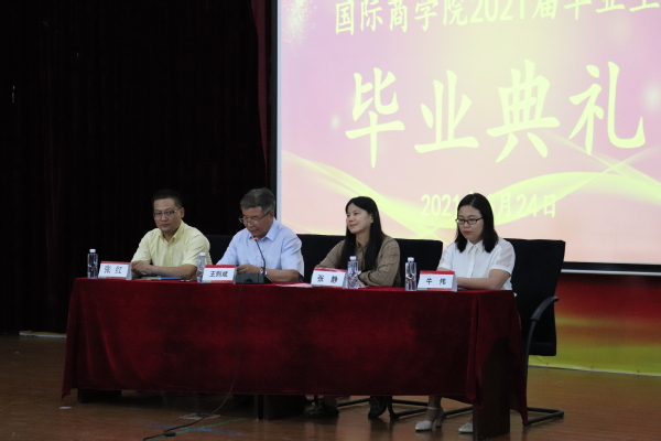 时光如陀螺飞转,岁月如白驹过隙,又是一年毕业季。6月24日中午12:30,国际商学院2021届毕业典礼在报告厅如期举行。国际商学院院长王则斌、副院长张静、党总支副书记张红、院长助理牛伟、全体教师以及2021届全体毕业生参与本次典礼,典礼由学院党总支副书记张红主持。
