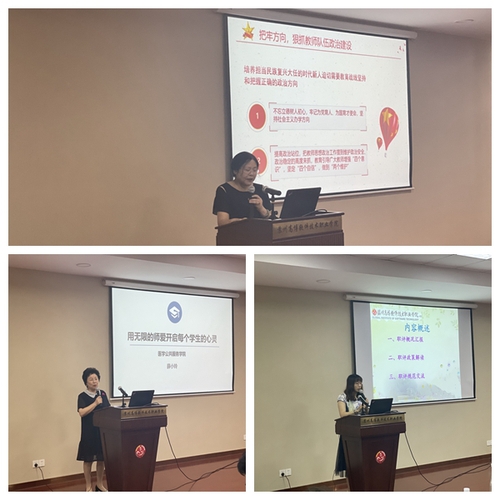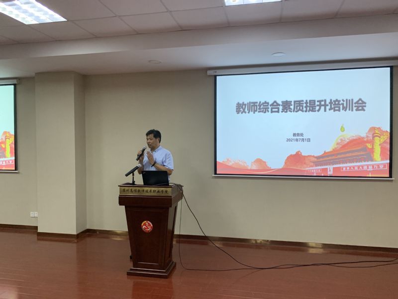 为全面提升学校教师综合素质,落实立德树人根本任务,适应现代职教发展要求,学校于7月1日上午召开我校教师综合素质提升培训会。陈家颐副校长、倪筱琴副校长、薛小玲校长特别助理、教务处陆霞处长、人事处龚三琼处长等领导以及全体教师参加本次培训会,会议由陈家颐副校长主持。