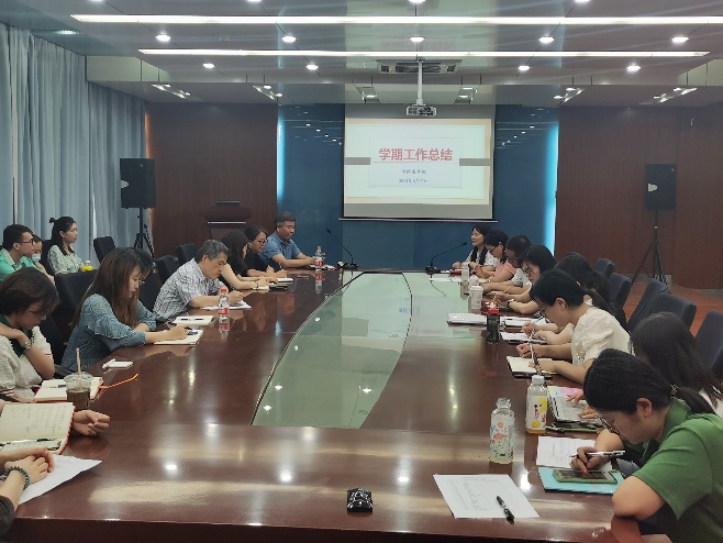 6月30日,国际商学院组织全院教职工在实训楼会议室举行学期总结大会,会议由张静副院长主持,会议有两项议程:第一,王则斌院长做学期总结报告;第二,各分管领导布置暑期工作。