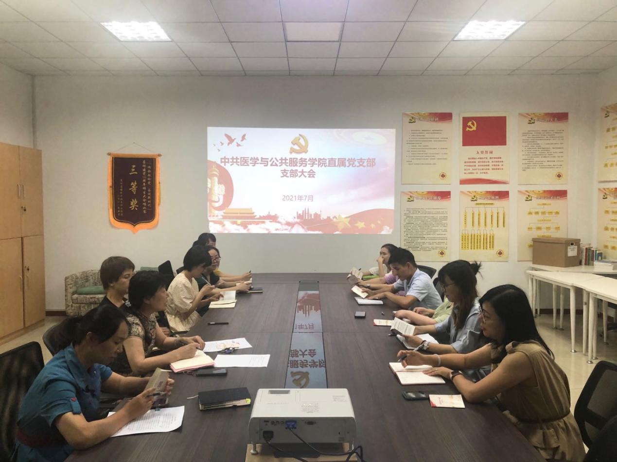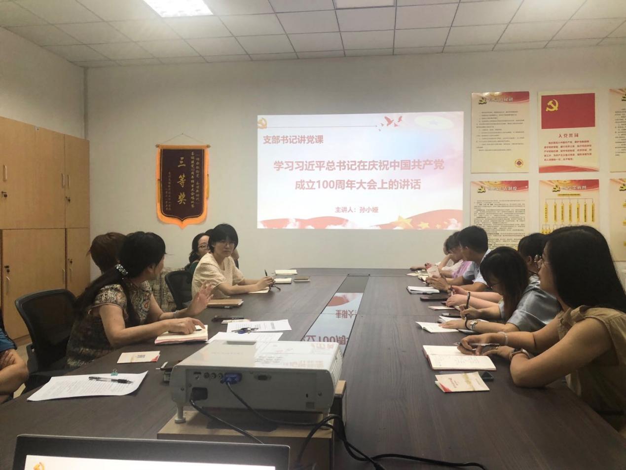 7月2日下午,医学与公共服务学院直属党支部召开党员大会,学习贯彻习近平总书记在庆祝建党100周年大会上的重要讲话精神。支部书记孙小娅以党课形式带领全体党员集中学习了习近平总书记“七一”讲话全文,并结合党史学习教育,希望全体党员牢记初心使命,进一步坚定理想信念,加强党性修养,在平凡的工作岗位上担当作为、奋勇前进。