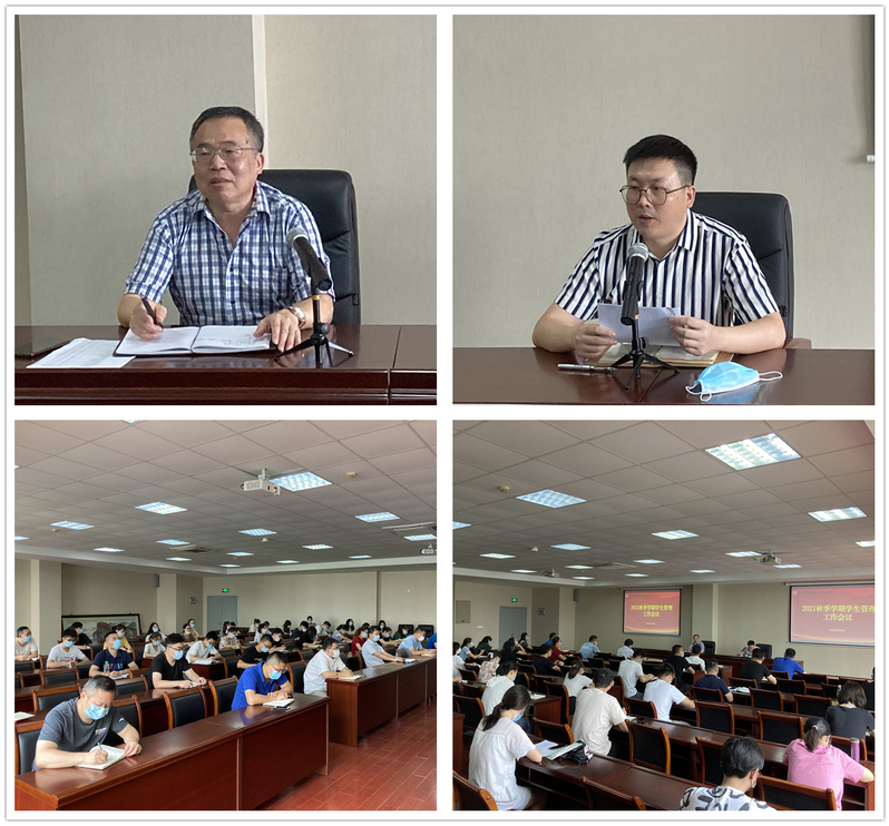 为进一步落实疫情防控工作要求,扎实做好秋季学期开学各项准备工作,8月28日,学校在行政楼215学术报告厅召开了2021秋季学期学生管理工作会议,对近期学生工作要点做了全面安排和部署。学校党委副书记、副校长徐子良、各二级学院副书记、学生处全体成员及全体辅导员参加此次会议,会议由学生处处长邹艳星主持。本次会议严格按照疫情防控要求,全体与会人员佩戴口罩,间隔就坐。