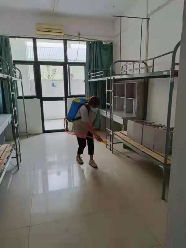 此次消杀范围涵盖所有教学办公楼区域的办公室、教学场地、宿舍楼、公共卫生间等场所,做到全覆盖、无死角,尤其对桌椅、公共教学用具、栏杆、门把手等高频接触设施进行重点消毒灭菌;同时严格按照上级防疫文件和要求,定期对室内场所开窗通风,保持空气流通,为全校师生筑牢安全屏障。