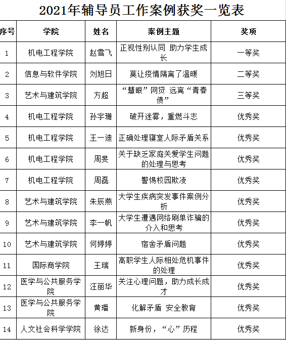 附件:辅导员工作案例校内获奖一览表