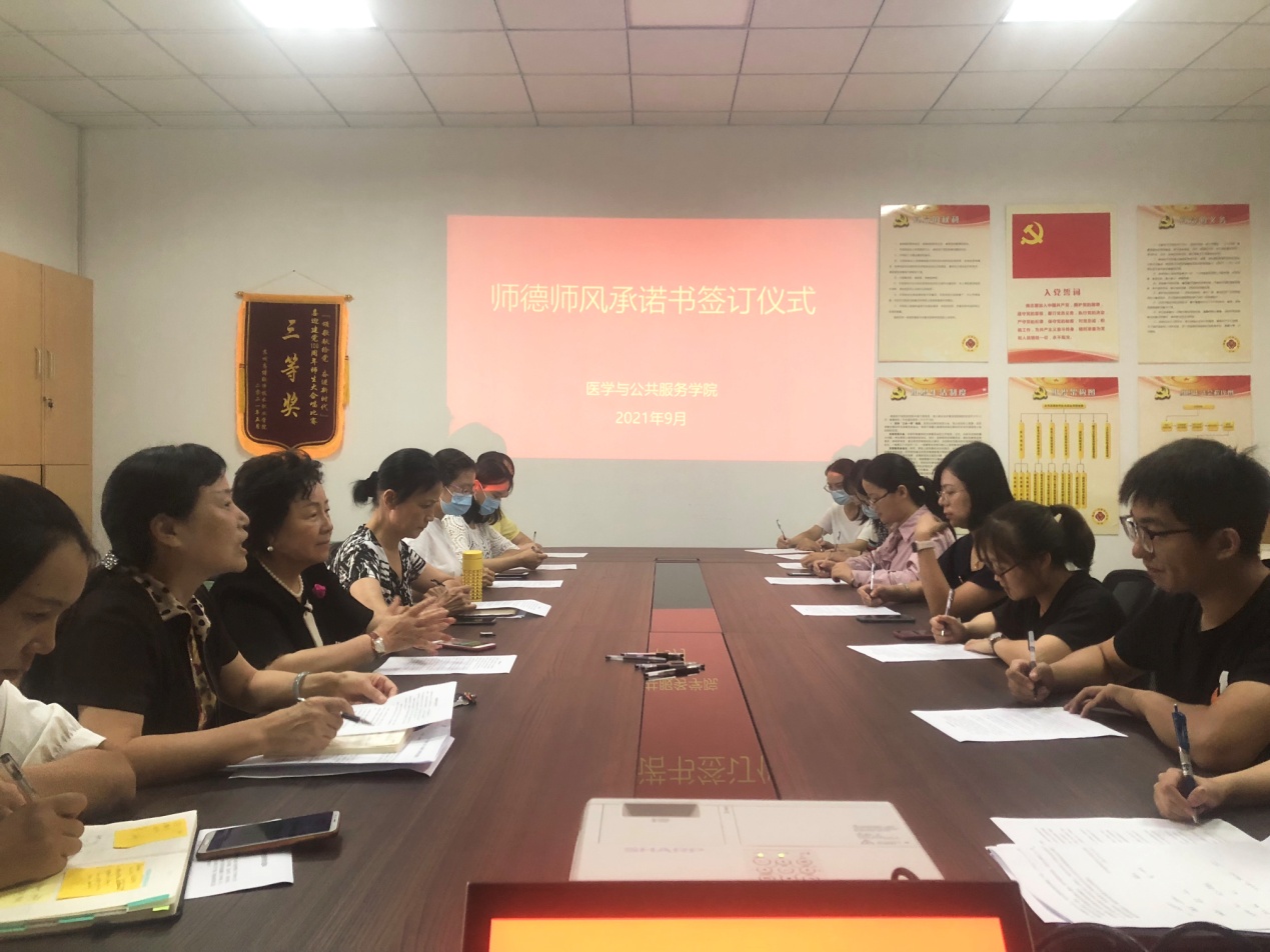 为进一步加强师德师风建设,落实立德树人根本目标,根据学校统一部署要求,医学与公共服务学院于9月10上午开展了师德师风承诺书签订仪式。本次活动由医学与公共服务学院院长孙小娅主持,全体教职工参加了活动。
