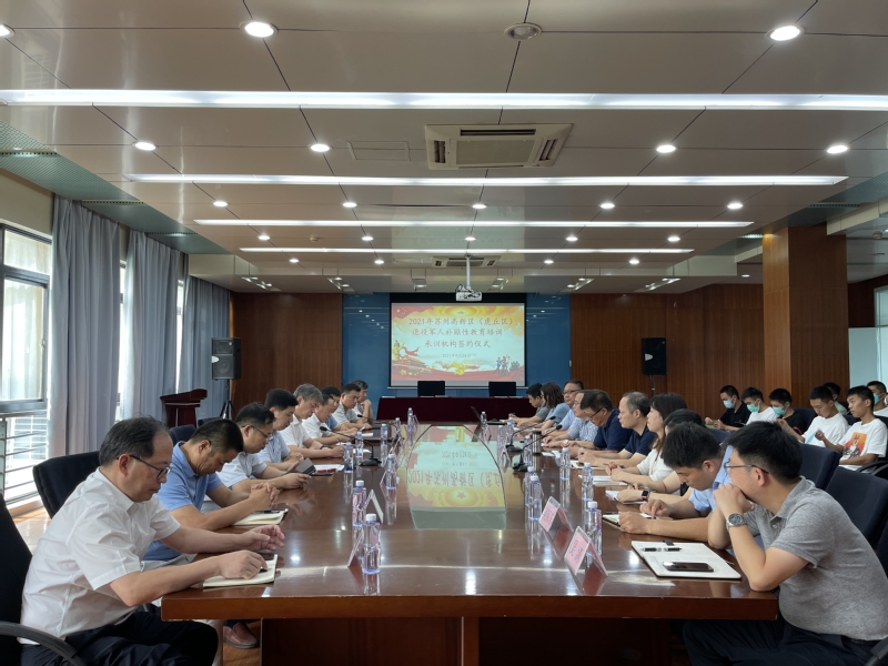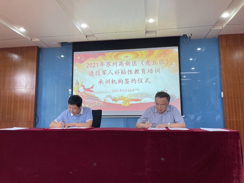 9月24日下午,区退役军人补贴性教育培训承训机构签约仪式在我院隆重举行。苏州高新区退役军人事务局局长孔杰峰、副局长周永前及局相关处室负责人、各承训院校代表参加了签约仪式,会议由章咏主持,周永前致辞。