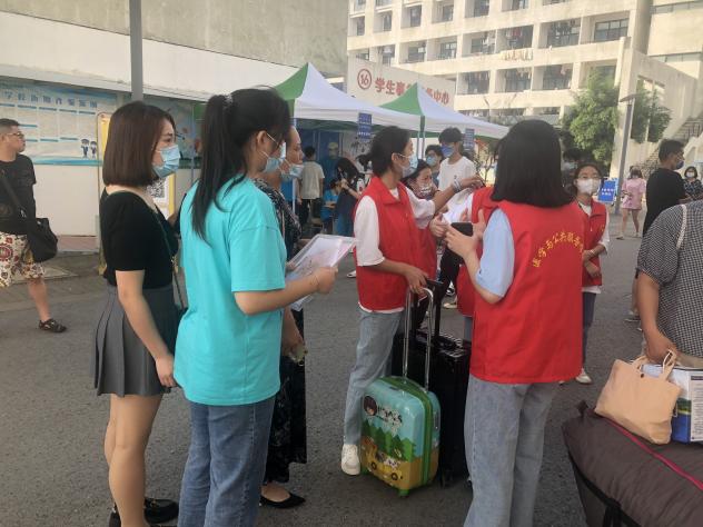 学生志愿者热情洋溢的笑脸是迎新工作一道亮眼的风景,一号门入校、教学楼西大厅报到注册、宿舍区登记、行李搬运……校园里随处可见他们忙碌的身影,他们用真诚的微笑和热情的服务让新生们感受到了医学与公共服务学院学生的素养与魅力,也展现出了青年学生的责任与担当。