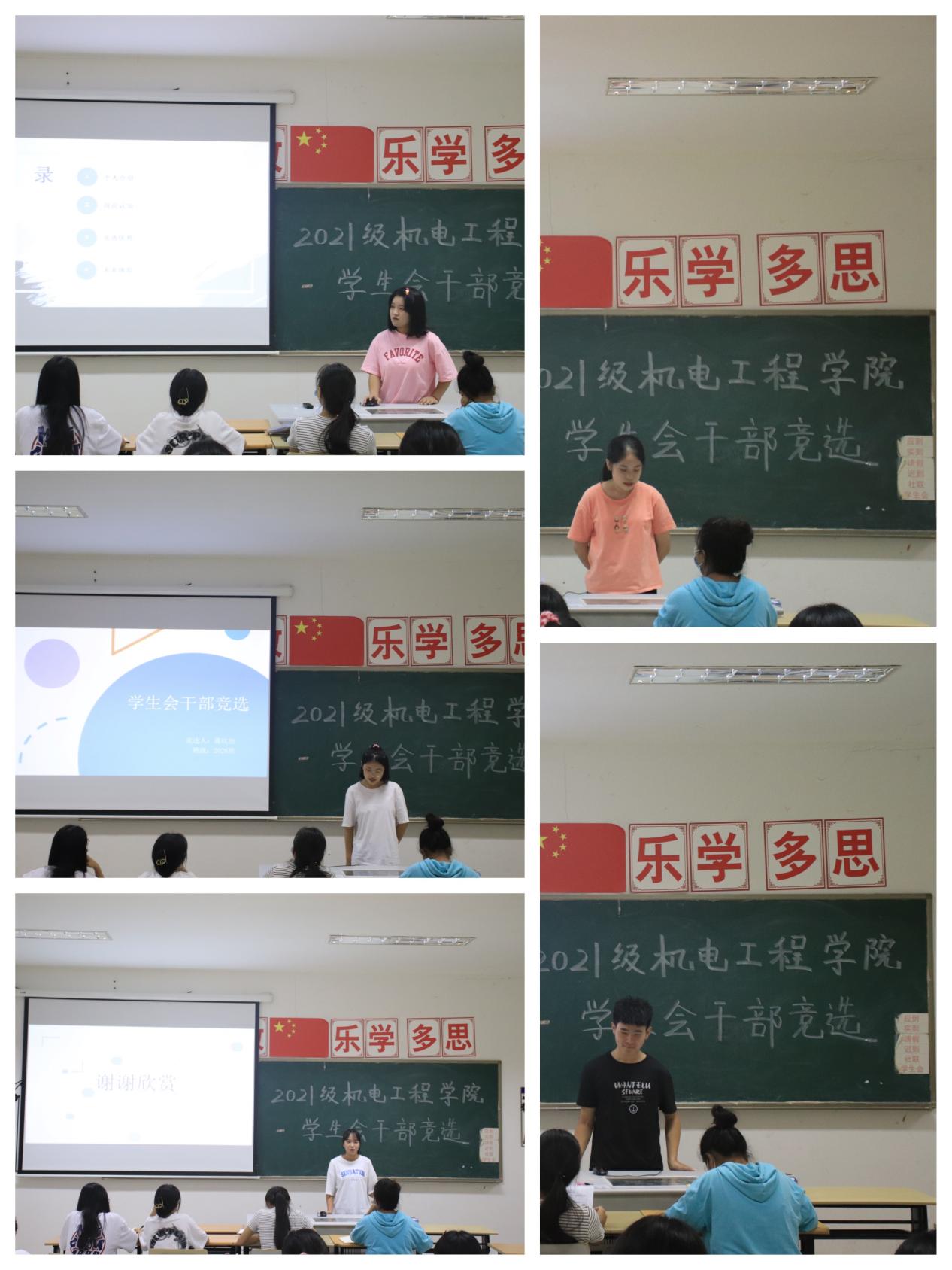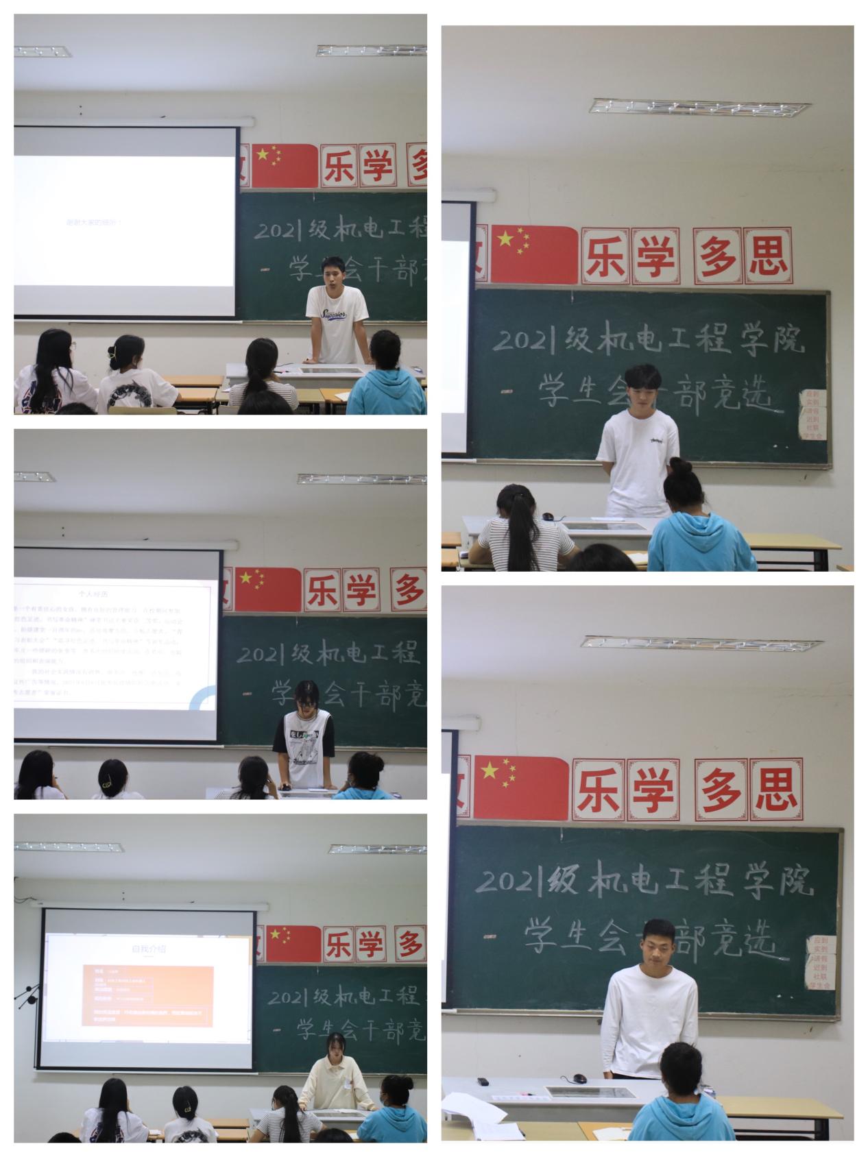 为进一步完善和规范我院学生干部的选拔任用工作,加强学生干部的队伍建设,结合机电工程学院实际,秉承着“公平,公正,公开”的原则。机电工程学院分团委于2021年9月27日中午12:30在教学楼12-111举办“机电工程学院2021级团学组织换届大会”。本次竞选由机电工程学院团委书记孙宇珊、机电工程学院学生会主要学生干部担任评委。