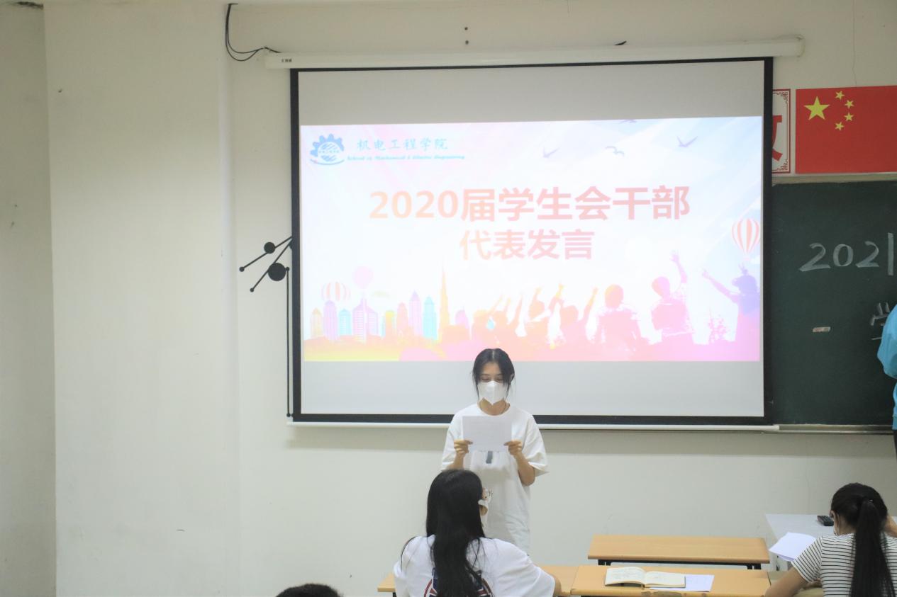 大会伊始,由机电学院学生会干部代表徐嘉仪同学总结且分享了对学生会工作一年的经验。告诉同学们:作为学生干部,要从各方面严于律己,具有高度责任感以及奉献精神,工作的意义不在于职务大小,而在于可以锻炼自己,我们要坚信办法总比困难多。