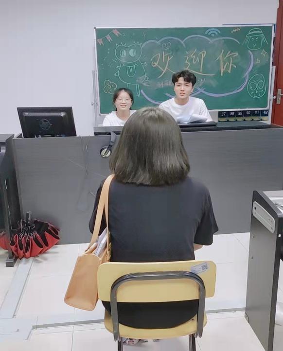 负责面试的学生干部认真倾听参加面试同学的自我介绍,并和同学进行深入交流。面试内容包括:谈谈自己性格优缺点、失败后你会怎么办、平时和同学怎么相处等等。部分同学也在现场展示了才艺。