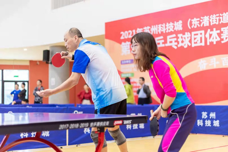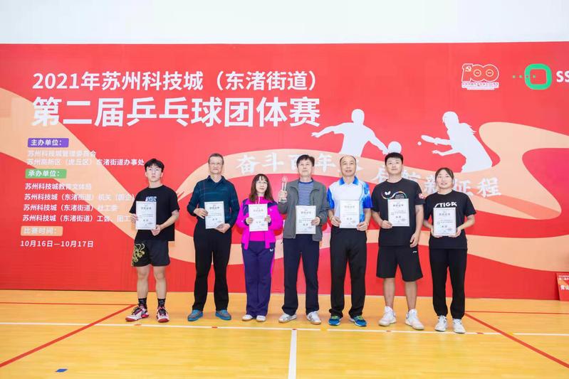 为庆祝中国共产党成立100周年,更好地践行习近平总书记在十九大报告中提出的“广泛开展全面健身活动,加快推进体育强国建设”,进一步丰富辖区居民百姓的业余文体活动,团结动员广大职工群众学党史、悟思想、办实事、开新局,以昂扬姿态奋力开启全面建设社会主义现代化国家新征程。2021年10月16日,由苏州科技城(东渚街道)主办的第二届乒乓球赛在苏州市科技城实验小学校拉开帷幕。我校由人文社会科学学院牵头组队,派出乒乓球代表队参加了团体赛和单项赛,整体表现优异,赢得赛事组委会、专家裁判和兄弟学校的高度评价。