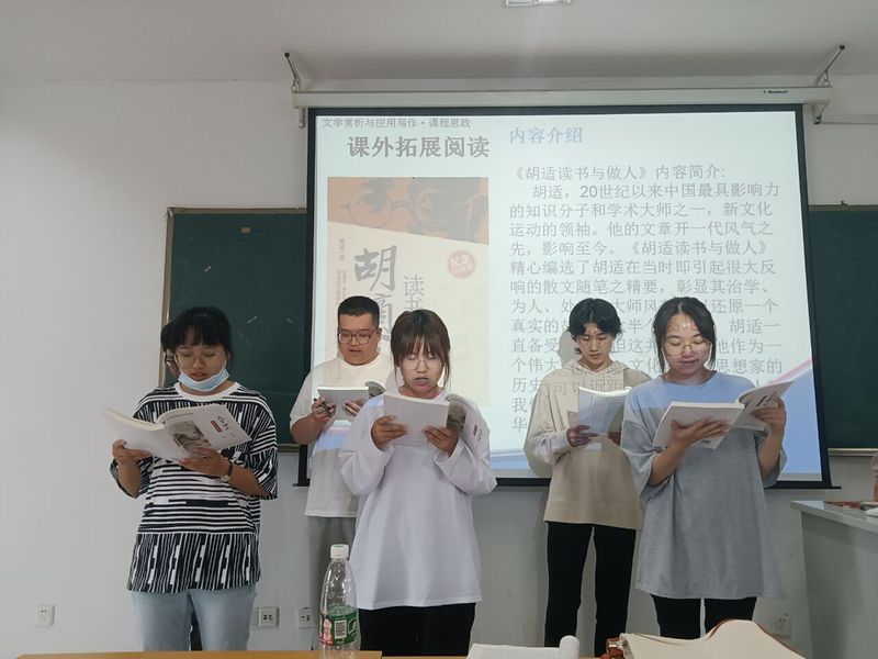 学院的《大学语文》课堂是一个推广普通话的主要阵地。因此,学校和大学语文老师抓住各种机会向全校师生宣传推广普通话。各专业同学共同合作进行了题为《让我们一起讲普通话》的演讲,他们从五个方面向大家提出倡议,倡导辅导员老师和队员们积极地行动起来,从自己做起,人人争做推广普通话和使用规范字的模范。在课上,同学们积极用普通话朗读课文,平时同学间交往交流倡导使用普通话,端正课上和平时的作业的汉字文本书写。同时在校园中积极营造良好的语言文化氛围,弘扬民族文化,树立民族精神,为构建书香校园和积极健康向上的校园文化而努力。