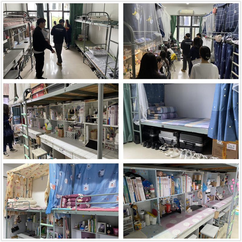 经过各二级学院初评,共有115间宿舍进入最终评比。在宿舍评比过程中,大家走进整洁、温馨、团结的寝室,充分领略高博学子朝气蓬勃、团结友爱、积极向上、健康快乐的精神风貌。有的宿舍虽然简单,但却有着“斯是陋室,惟吾德馨”的高雅情怀,布置得温馨而又和谐,给人一种家一样的温馨;有的宿舍张贴了各类宿舍标语,如“因缘相聚,用心珍惜,相亲相爱”、“同一个寝室同一条心,同一个世界同一个梦”等,让我们切身感受到他们齐心协力、互帮互助、共同追求自己理想的激情。通过评比发现,各二级学院推荐的宿舍卫生普遍较好,通风良好,被褥衣物叠放整齐,地面、桌面整齐干净,用电安全;女生宿舍温馨雅致,带给人一种家的感觉,男生宿舍则是干净整齐、简洁大方,赢得了评委老师的一致赞赏。