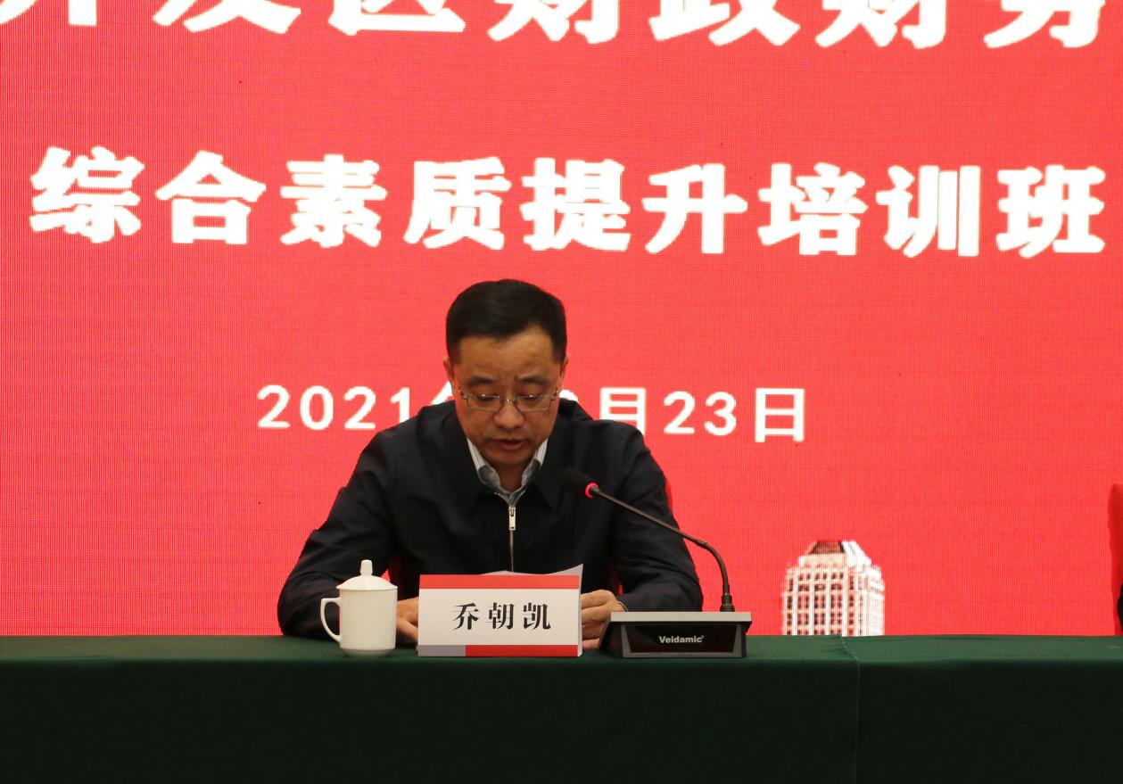 南通市经济技术开发区财政局副局长乔朝凯先生首先致辞,他代表南通开发区财政局感谢高博学院各级领导以及工作人员对本次培训班的高度重视和周到安排。乔局长在讲话中强调,在后疫情形势下,财政财务人员知识更新和提升综合素质是助力开发区企业综合实力的需要;是培养高素质复合型的高级管理人才的需要;是更好的为开发区经济高质量发展的需要。同时,乔局长对各位学员提出三点要求,一是统一思想,提高认识,明确培训的必要性;二是珍惜机会,严格自律,提高学习的自觉性;三是勤于思考,学以致用,体现培训的时效性。