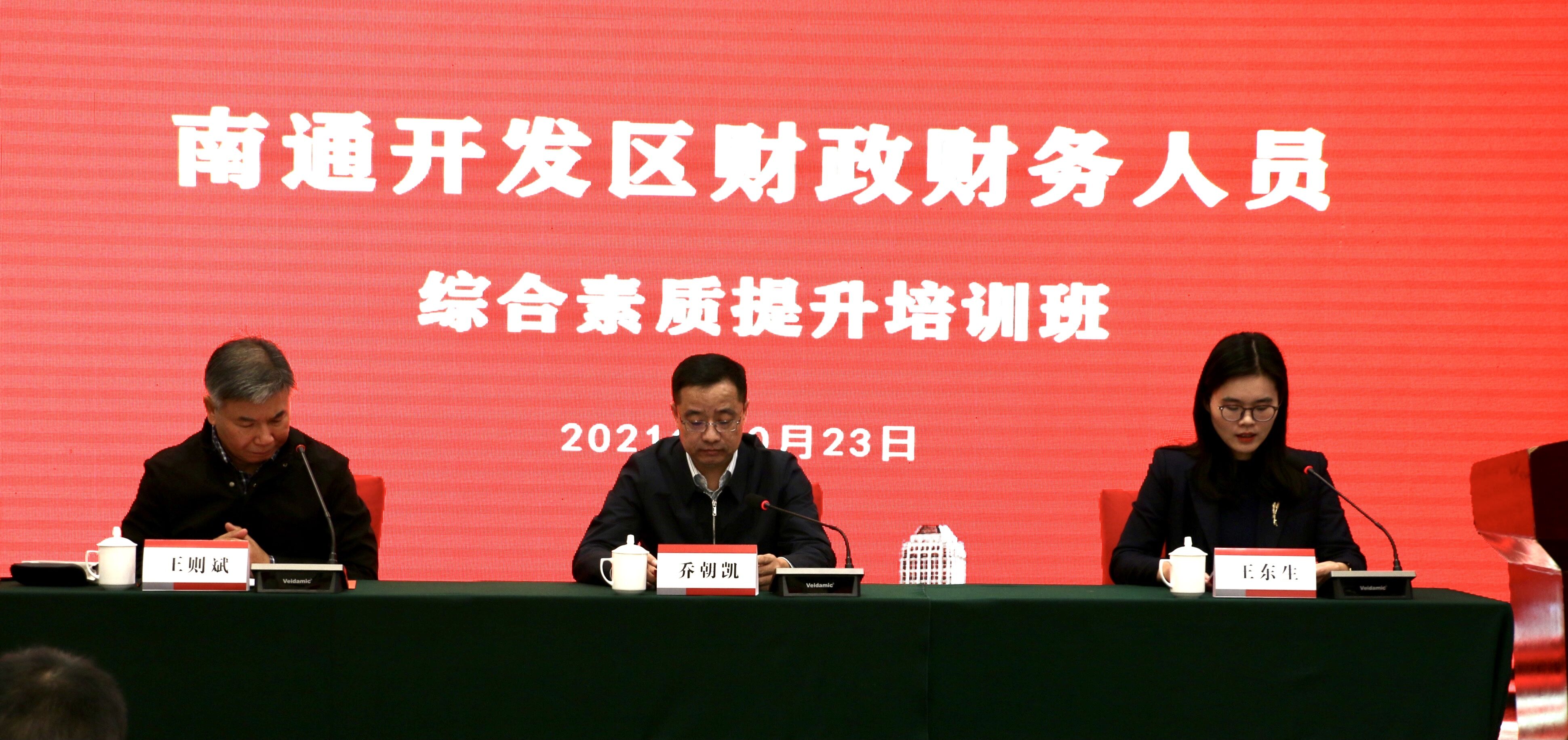 校特聘教授、国际商学院院长王则斌在致辞中,首先向参加培训的学员表示诚挚的问候,向南通开发区财政局的大力支持和信任表示衷心的感谢。王院长指出,本次培训经过多次调研制定培训方案,本着实用性和科学性原则确定培训内容、安排现场教学路线。希望全体学员积极参与,学有所获,学有所成。同时对全体学员提出了两点要求:一是充分认识干部培训的重要意义,增强学习自觉性,紧随发展步伐,跟上时代节拍。二是本次安排了现场教学路线,希望全体学员遵守培训安排,确保学习效果。同时希望全体学员认真听课,高兴而来、满载而归。
