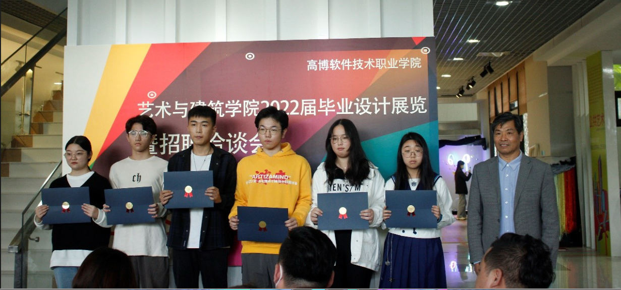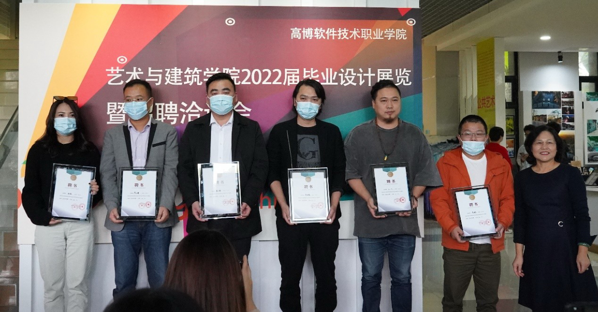 开幕式上,陈家颐副校长为24件优秀毕业设计作品的作者代表颁发收藏证书,倪筱琴副校长为学院企业专家代表颁发聘书。