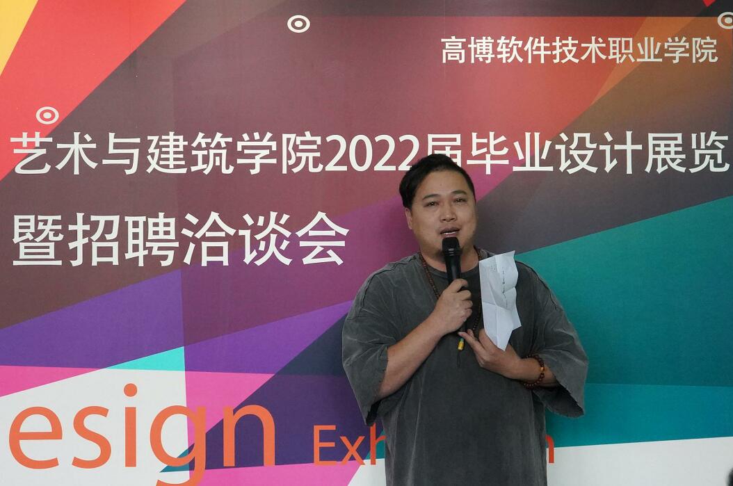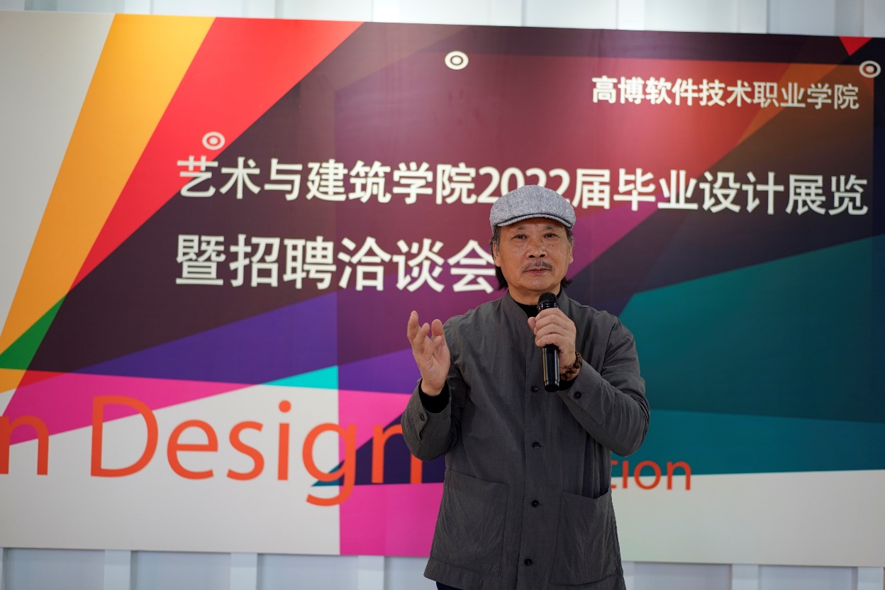 开幕式上,陈家颐副校长代表学校向此次毕业设计展开幕表示祝贺,向企业对学校的大力支持表示感谢。陈校长对艺术学院近年来在教学改革、人才培养探索等方面的快速发展表示肯定。他指出,经过两年的兴趣唤醒、技能学习、初心坚守,毕业展不仅是一道靓丽的风景线,更是一场面向企业、面向市场、面向公众的大阅兵,是学校教学质量和水平、学科建设与发展、人才培养等综合实力的展示。陈校长表达了对毕业生前程的美好祝愿,并祝本次毕业设计展圆满成功。