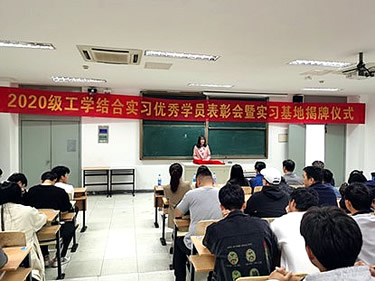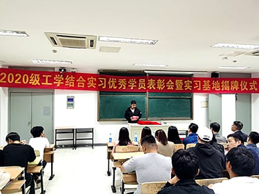 2021年10月25日(星期一)中午12:40,苏州高博软件技术职业学院机电工程学院2020级工学结合实习优秀学院表彰暨实习基地揭牌仪式在教学楼207教室举行。本次活动由机电工程学院副院长蔡伟义教授主持,出席本次活动的有学校副校长陈家颐教授,教务处陆霞处长,校企合作办马浩主任,教务处汪翀主任,机电工程学院廖振强院长、张茂青副院长及各系主任、辅导员,苏州金圭谷智能科技联合代表葛晨毓总经理,苏州技泰精密部件有限公司汪婷副总经理及2020级和2021级工学结合学生和各班学生代表等。