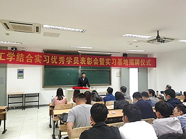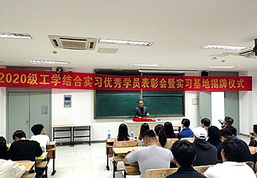 张茂青副院长的发言简单的介绍了本次工学结合的安排过程,赞扬了工学结合学生通过实习在社会家庭责任担当、职业素养、工作技能等方面取得的进步,对2020级工学结合受表彰的同学表示热烈祝贺,他并代表机电工程学院对金圭谷科技有限公司、技泰精密部件有限公司为工学结合学生精心安排和指导表示衷心的感谢。