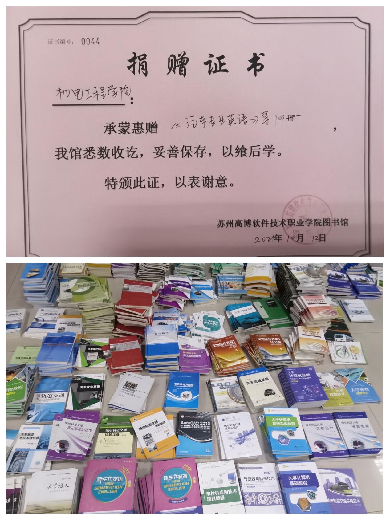 捐出一本书,奉献一颗心。通过此次图书捐赠活动,让知识在热爱知识的人手中传递,让爱心在同学们之中传递。我们相信,全体师生的读书热情会越来越高涨,高博校园将充满更加浓郁的书香气息。(机电工程学院团委 宣)