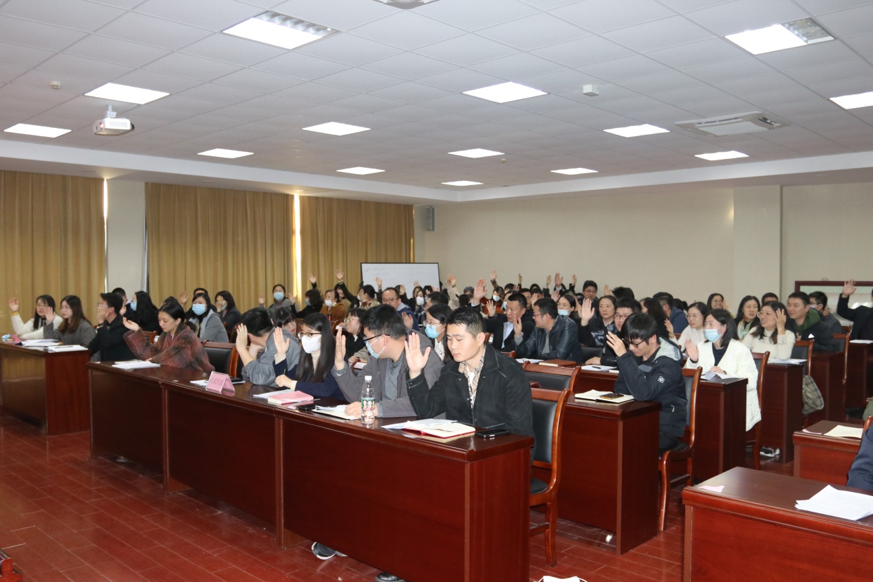 会上,人事处处长龚三琼为参会教职工详细解读管理岗位职员制度改革方案。教代会代表们听取解读后,针对方案提出问题、修改意见及建议,龚三琼处长作现场解答或就修改意见及建议作反馈说明。随后,教代会代表们对方案进行现场举手表决。