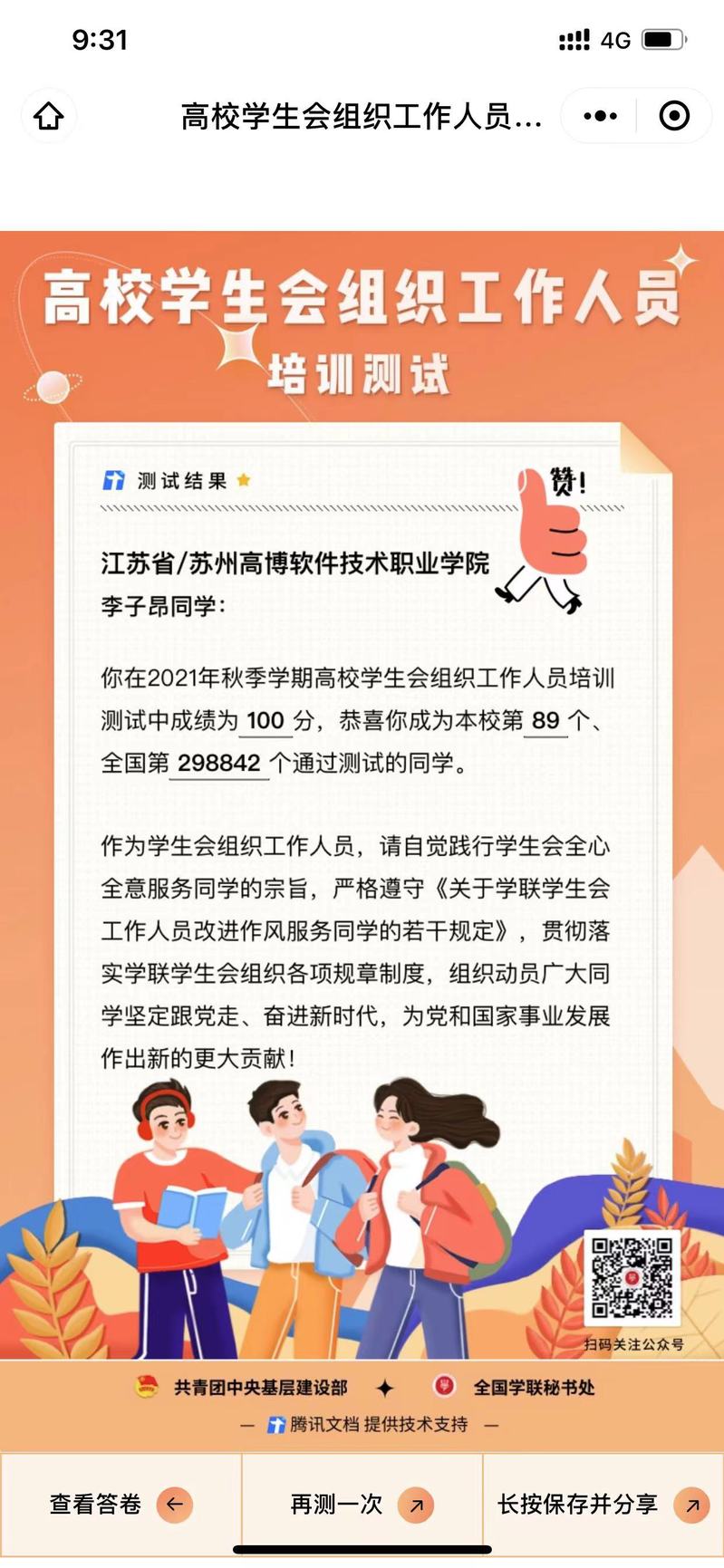 随后,信软学院学生干部们一起完成了高校学生会工作人员的培训测试,学生干部们认真讨论,共同解决问题,最终都取得了良好的成绩。