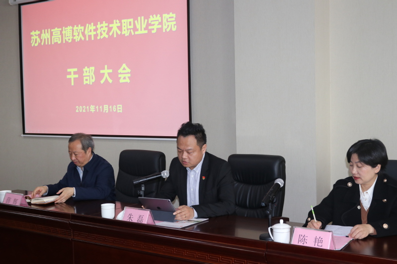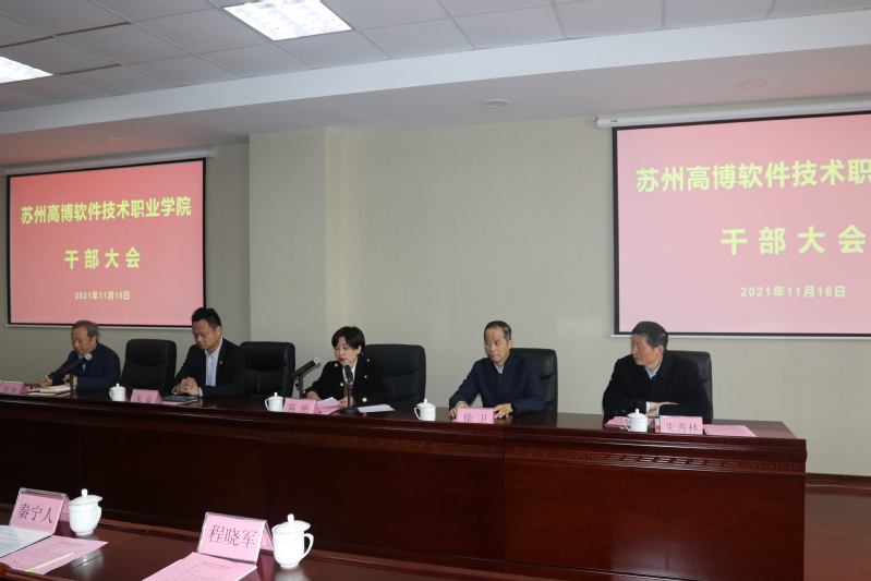 11月16日上午,我校召开党委书记任职宣布会,传达省委关于学校党委书记的任职决定。省委教育工委组织处处长陈艳、组织处一级主任科员王康,市委教育工委副书记徐卫、组织人事处处长秦宁人、组织人事处干部成龙,苏州大学党委常委、党办主任、统战部部长薛辉,学校理事会理事、秘书长朱磊,党委书记、校长朱秀林,学校领导班子成员各职能部门、二级学院主要负责人,教职工代表等参加会议。