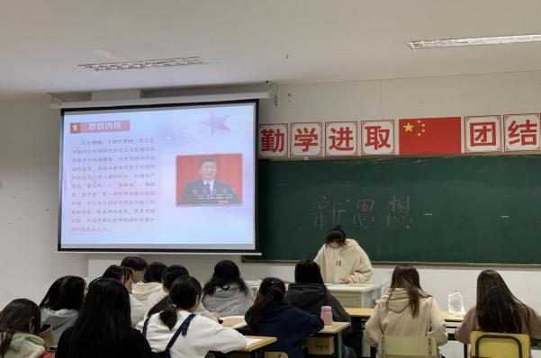 首先,盛同学为大家讲述了习近平新时代中国特色社会主义思想的产生背景。社会主要矛盾的变化,构成了我们进入新时代的基本依据和基本动力,也是习近平新时代中国特色社会主义思想建构的逻辑起点。然后,盛同学为大家讲述习近平新时代中国特色社会主义思想的思想内核,八个明确、十四个坚持。最后,盛同学还为大家阐述了习近平新时代中国特色社会主义思想的现实意义,让大家对此有了更深入的认识。同学们认真倾听和学习习近平新时代中国特色社会主义思想,积极踊跃回答问题。