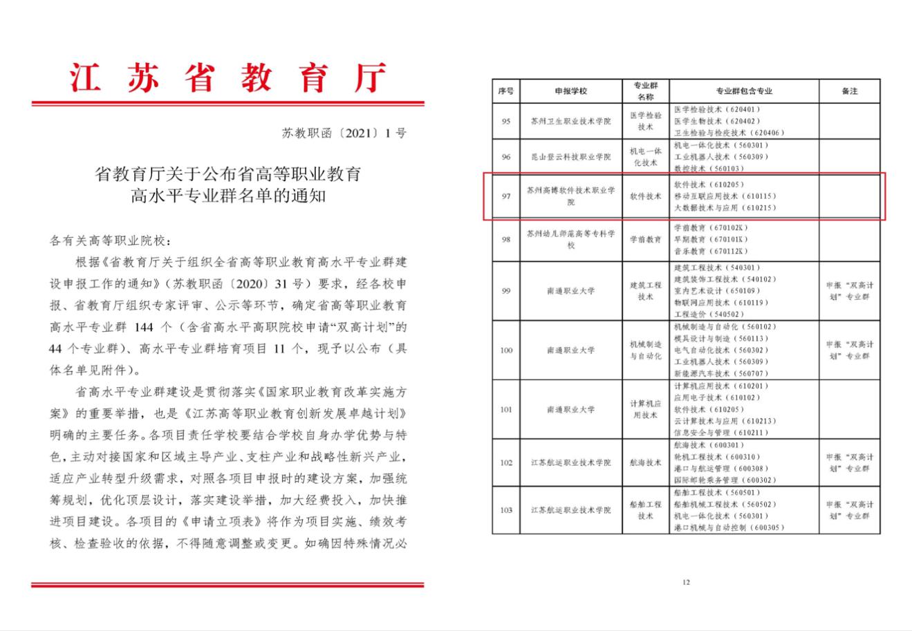 江苏省高等职业教育高水专业群