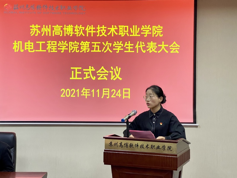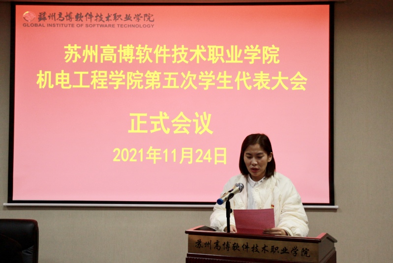 紧接着,机电工程学院学生党支部书记王一迪同志宣读了《关于苏州高博软件技术职业学院机电工程学院第五次学生代表大会选举结果的报告》。