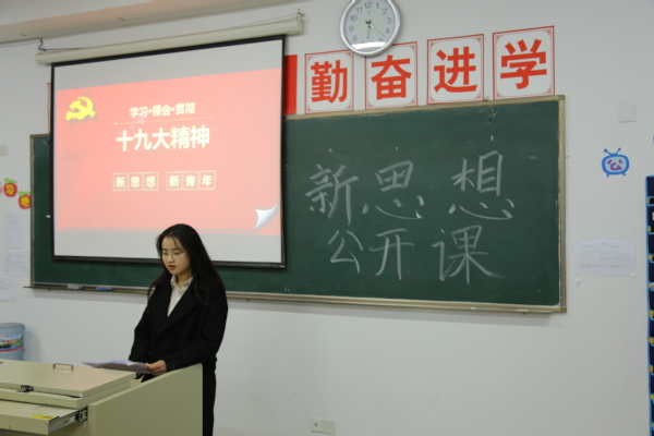 这堂课不仅仅是为了宣传党中央提出的新思想以及对当代青年的重视,也是为了唤醒当代青年为了国家、为了社会而投身社会发展当中去,这次课从实际效果上来看,是成功的,在课堂上也有部分同学提出了自己的问题,也表示自身应该在大学期间更加努力,使自己变得优秀。这次公开课使同学们相互传授经验的同时也让让他们更加亲近党亲近祖国。
