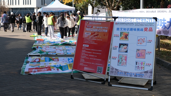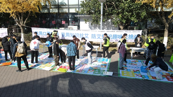 12月1日中午,学生健康教育中心围绕今年的主题“生命至上 终结艾滋 健康平等”在学校食堂广场举行了“12.1世界艾滋病日”的广场宣传活动。现场准备了琳琅满目的宣传纪念品、憨态可掬的布朗熊、充满童趣的真人飞行棋等,吸引了全校师生的目光。