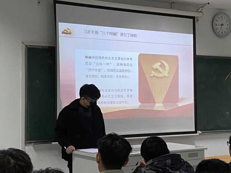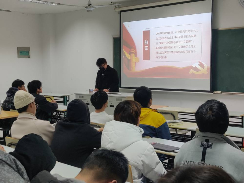 首先,钱亮同学讲解了习近平新时代中国特色社会主义思想的核心要义是坚持和发展中国特色社会主义。紧接着,全班同学们集体讨论了其核心内容补充道,习近平新时代中国特色社会主义思想的核心内容是中共十九大报告概括的“八个明确”、“十四个坚持”。最后由班长总结本次活动,习近平新时代中国特色社会主义思想为中国现代化之路提供强大精神支撑。