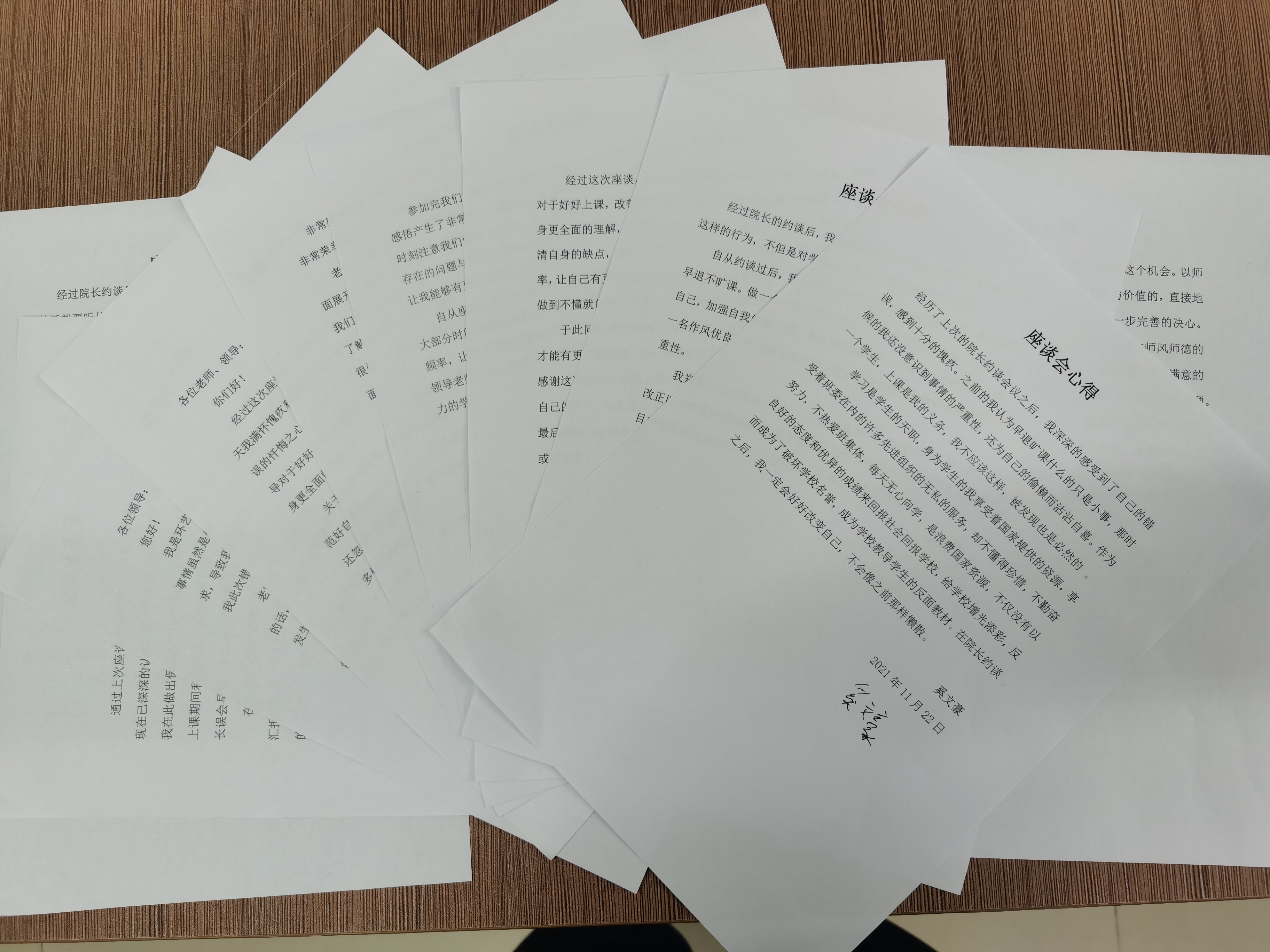 图2十二名学生撰写座谈会心得