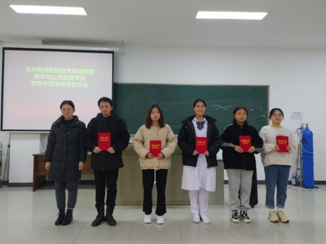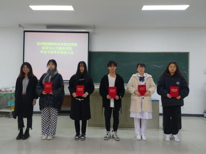 2021年12月10日中午12:30,医学与公共服务学院在12-103教室举行医学院学生干部考评表彰大会。医学与公共服务学院直属党支部副书记赵洪鹏老师,分团委书记贺茜老师以及辅导员老师们出席本次大会。大会由学生会主席团成员周璐歆同学主持。