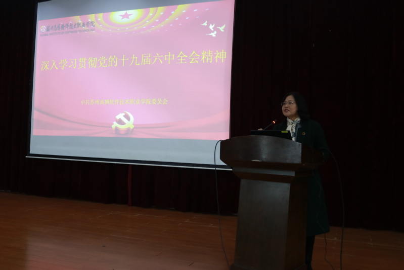 12月15日,校党委在报告厅举办深入学习贯彻党的十九届六中全会精神专题宣讲会,苏州市人大常委会研究室刘海龙副主任应邀作了题为《百年奋进再出发的政治宣言和行动指南——学习党的十九届六中全会精神》的专题宣讲。学校党政领导班子成员、全体教职工、学生代表共200余人参加了此次宣讲会。会议由党委副书记倪筱琴主持。