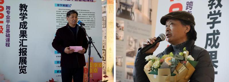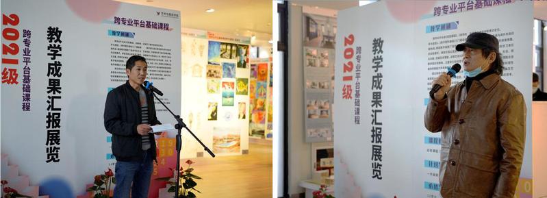 廖军教授在看完现场的学生作品后,对艺术学院基础课程教学成果给予肯定,并表示艺术学院“先试先行”教学改革符合当下职业教育对人才培养的需求,对学院未来转型发展充满了信心。在活动上,陈家颐副校长代表学校祝贺艺术学院展览成功举办。他肯定了艺术学院对跨专业平台基础课程的教学探索并积累了宝贵经验。他说,要继续深化课程改革首先要坚持立德树人的方向,积极探索艺术平台的思政课程问题,坚持深度产教融合,大胆引进企业项目,使教学更贴近工作环境,贴近生产一线,贴近实际操作过程,来延伸平台基础课程的教学意义。