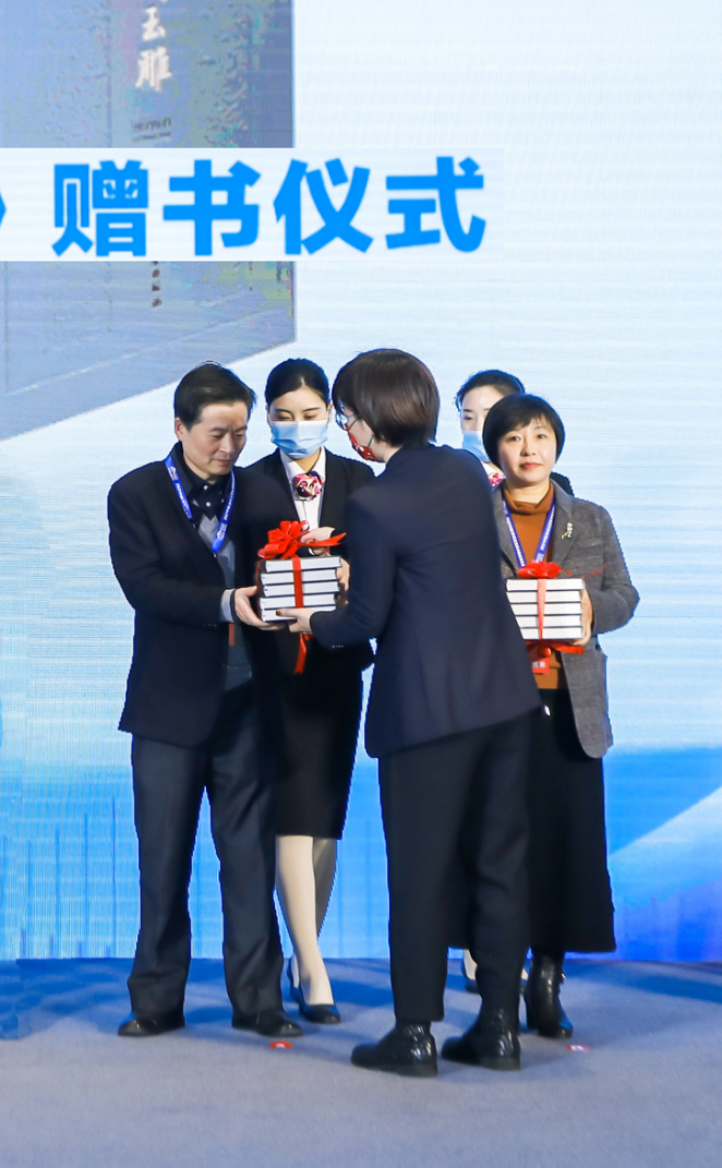 艺术与建筑学院作为邀请单位,接受组委会捐赠5本《苏州玉雕》图书,由艺术学院党总支书记、副院长施建平特聘教授上台领取赠书。与此同时,施建平特聘教授现场分享艺术学院推行工作室制的“课程项目化、项目课程化”课程改革成果,展示了艺术与建筑学院办学特色和独具优势,吸引了众多非遗代表性传承人和工艺美术大师。现场与刺绣大师蔡梅英达成创意苏绣文创产品与线上直播意向,为艺术学院推行工作室制教学改革创造了契机。施建平特聘教授、张斌副教授参与现场互动交流,听取国家级工艺美术大师俞挺介绍《天公地道尊》作品创作过程,从材料选取、题材选择、花纹设计到精湛工艺,作品透露出“巧夺天工”、“匠心独运”的艺术内涵,每一个步骤都蕴含着工美大师的“专业、专注、专心”的工匠精神和情怀。