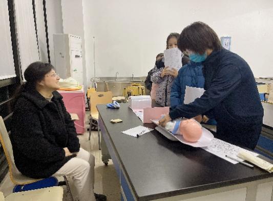 为做好本次培训,医学与公共服务学院精心组织,研制培训方案、组织学生报名、聘请校外专家、严格过程管理、确保培训质量。幼儿发展与健康管理专业老师们放弃休息时间,担任助教,协助管理培训课堂,并在课余指导学生进行实操练习。为了检验学生掌握情况,提高考核通过率,于考前一周进行了强化训练和模拟考试,全部实操项目学生逐一过关。