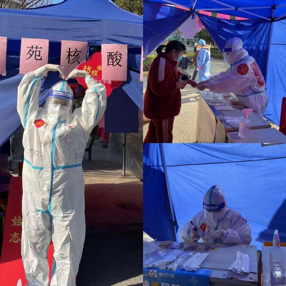 抗击疫情,巾帼不让须眉。艺术与建筑学院党员韩露老师挺身而出,站在抗疫防控的最前列。韩露老师深切地说:“我是2013年入的党,已有近10年的党龄,如今苏州疫情在即,人民有需要,党员理应冲在前。每一名共产党员都应亮出‘我是党员'的鲜明本色,挺身而出、冲锋在前,跟时间赛跑,同病毒较量,切实发挥好党员先锋模范带头作用。”韩露老师用实际行动积极响应苏州市委组织部、市宣传部、高博学院党委和艺术学院党总支发出的“动员令”、倡议书,做到了在重大事情和考验面前勇于担当的精神!为了能尽快加入抗疫一线,她第一时间先后联系了虎丘街道、沧浪街道、平江街道报名参加志愿者。登记完个人信息一直未等到通知的她心急如焚。第二天她直奔小区采样点找到负责人,表明自己愿为抗疫出份力的决心。