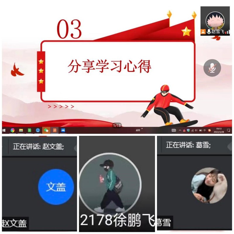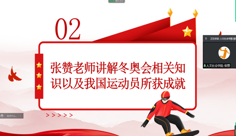 张老师围绕冬奥会知识、中国参与历届冬奥会及获奖情况以及谷爱凌、苏翊鸣等冰雪健儿在本届冬奥会上拼搏奋斗的故事给大家上了一堂生动别致的实践教学网上互动课。纵观每一位奥运冠军的成长经历,都离不开他们日积月累、坚持不懈、一丝不苟的拼搏与努力!作为青年学生,大家要时刻保持清醒头脑,积极进取、开拓创新。