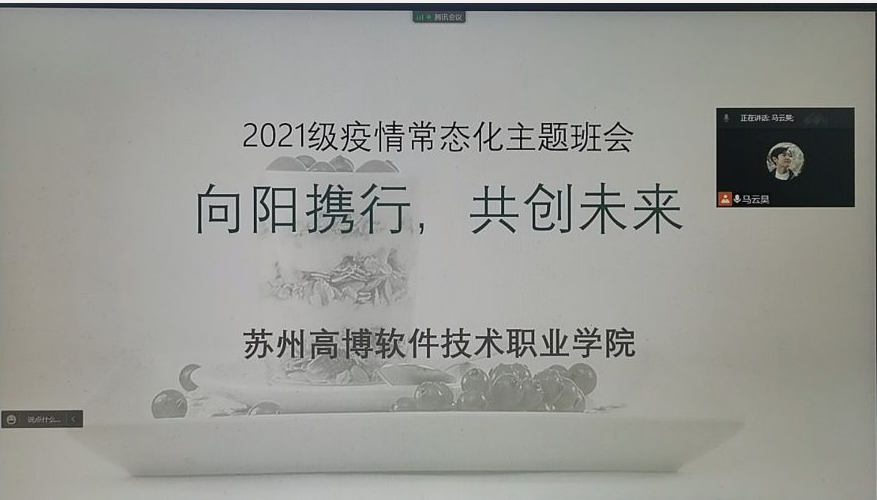 疫情面前,为贯彻落实省教育厅关于组织开展“向阳携行 共创未来——大学生心理健康教育江苏行”主题教育活动通知【苏教学涵(2022)5号】及相关文件精神,也为培养师生身心健康,进一步提升我院师生自尊自信、理性平和、积极向上的健康心态。2022年3月,我院配合校心理健康中心召开了疫情常态化管理下的心理防疫主题班会。