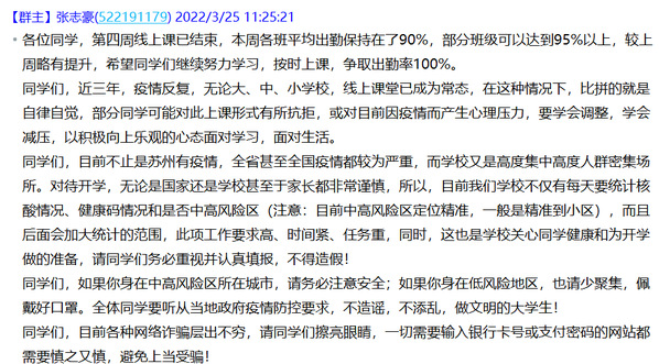 自2022年开春以来,疫情又一次席卷苏城,苏州的防疫工作依旧严峻,学生的教学工作依旧在线上进行。在国际商学院党政领导关心帮助和支持下,任课老师和辅导员井然有序地开展线上工作。