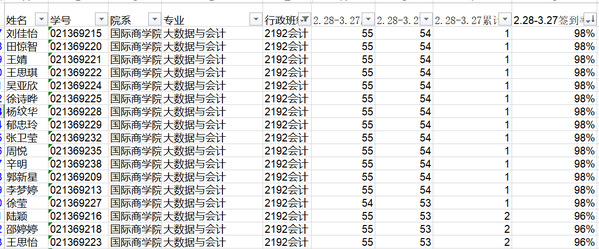 各位专兼职辅导员,对于学生出勤工作格外重视,根据超星线上出勤数据统计,及时了解缺勤学生情况,了解学生的心理状态,积极提升学生的线上课程参与积极性,保证了线上课堂的正常运转。