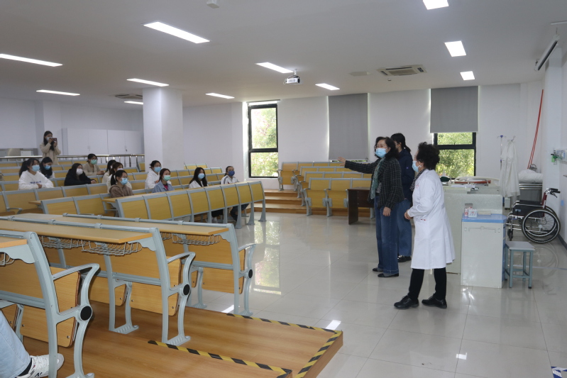 学校特别校长助理、苏州市政府专家咨询团专家、苏州市护理学会名誉理事长、教授薛小玲,学校医院与公共服务学院院长、临床医学教授孙小娅现场观摩,给予专业指导。