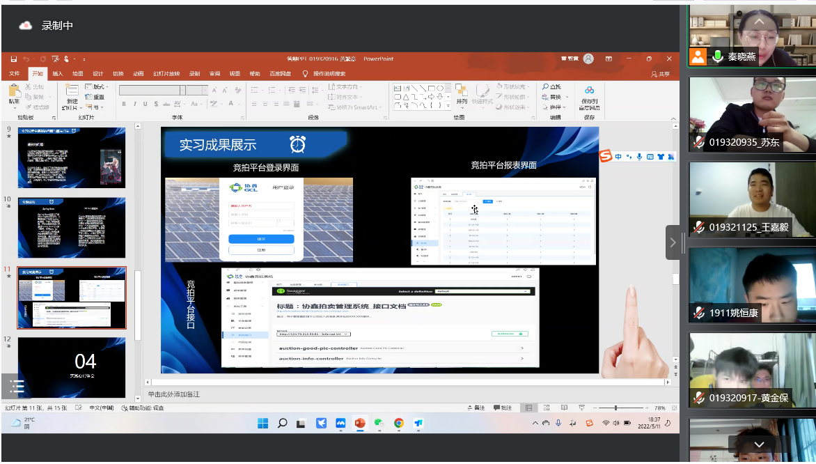 “云端”答辩对于老师和同学们来说都是一次全新的体验和挑战,为了保障答辩工作的顺利开展,我院按照教务处的要求,制定了《信息与软件学院2022届毕业生毕业论文(设计)线上答辩工作方案》等细则,对线上答辩工作进行了全面安排部署,详细策划了线上视频答辩流程,围绕组织实施、答辩要求、答辩时间、答辩注意事项、文档整理等重点方面作出了详细说明和指导。此次答辩小组共有8组,答辩前,同学们与老师们共同拍下了“云相聚”的大合照。答辩过程中,学生通过共享屏幕的方式讲述毕业论文(设计)内容,教师通过视频语音与学生互动、点评和指导,整场答辩现场秩序井然。