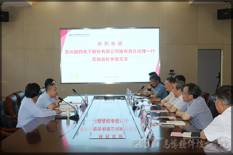 为推动前期我校赴企业交流达成的合作共识落地落实,苏州固锝电子股份有限公司滕有西总经理、陈瑞珠副总经理一行回访我校。学校校长朱秀林,党委书记薛辉,党委副书记、副校长徐子良,副校长陈家颐,副校长邹学海及二级部门相关负责人进行了热情接待。座谈会由副校长邹学海主持。