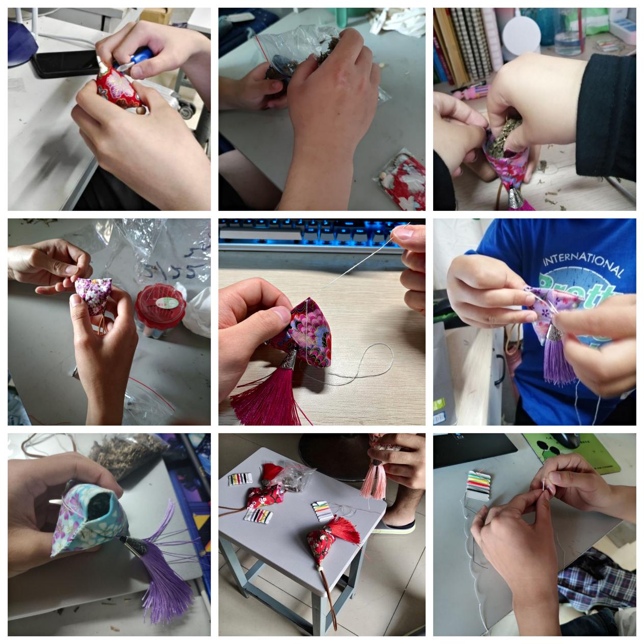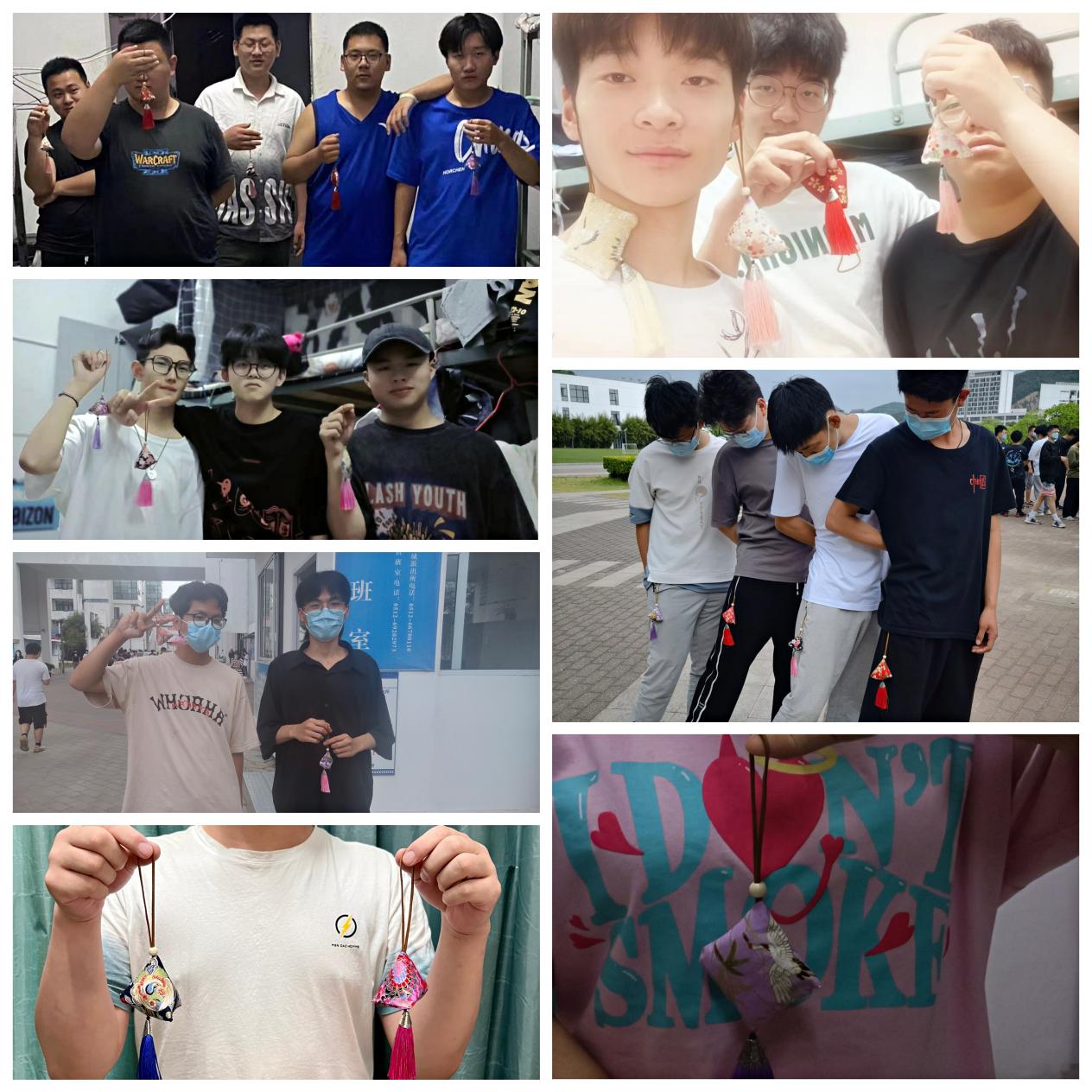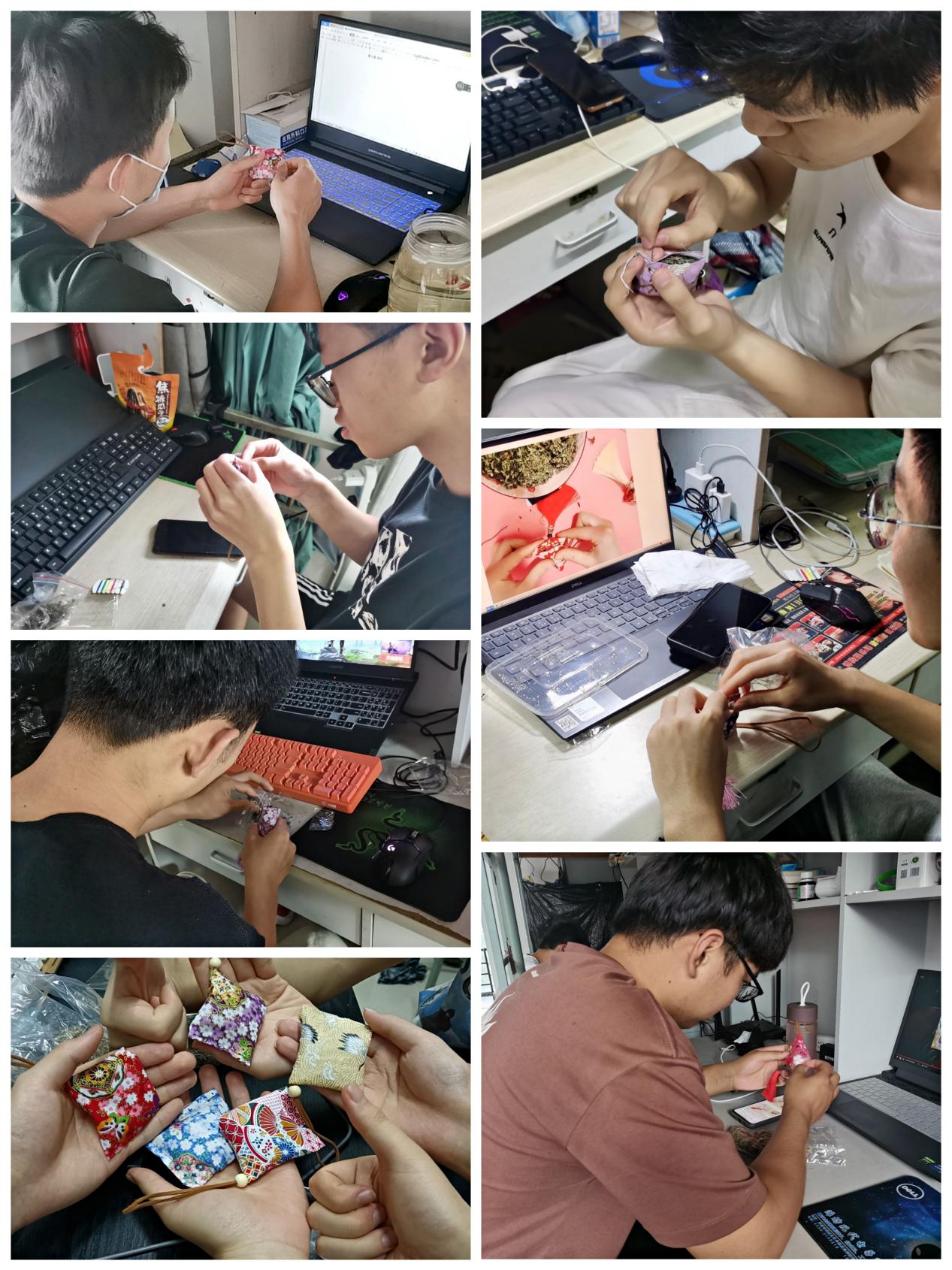 同学们为自己做的香囊打Call,采用各种形式展示自己亲手缝制的香囊,用来对屈原的缅怀。通过DIY手工制作香囊活动,不仅培养了机电学子的合作意识与动手能力,还加强了新时代大学生的劳动教育。