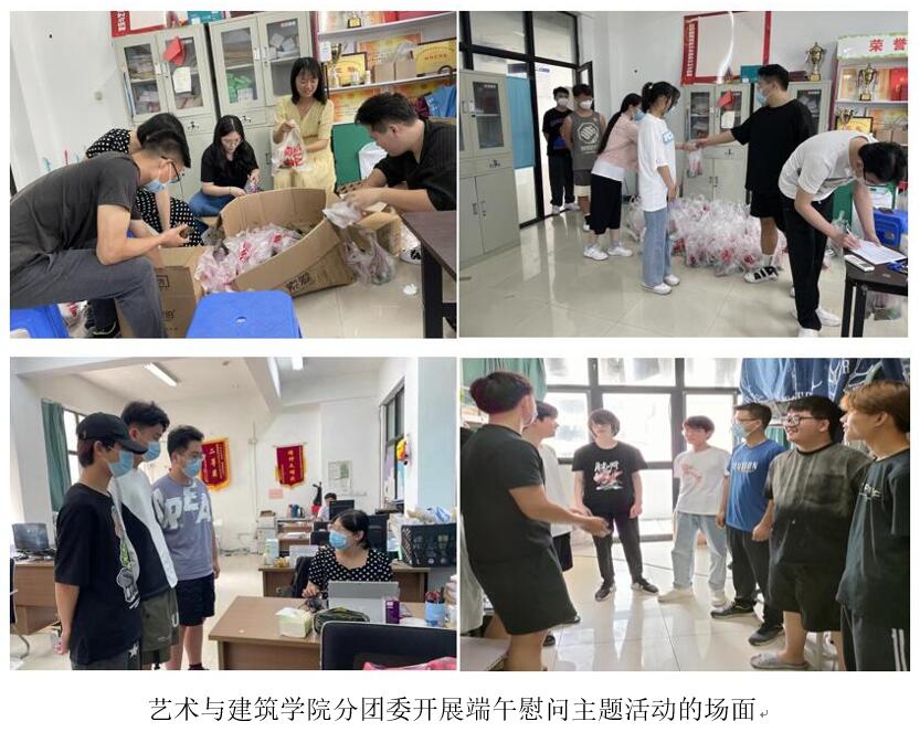 通过端午慰问主题活动,不仅加深了同学们对传统节日的认识,弘扬了中华民族的优秀文化,同时增强了学生对传统节日的认同感和对优秀传统文化的理解、认知,激发了学生的爱国情怀和家国情怀,燃起对中华民族精神信仰,让中华民族优秀传统文化代代相传。(艺术与建筑学院分团委)